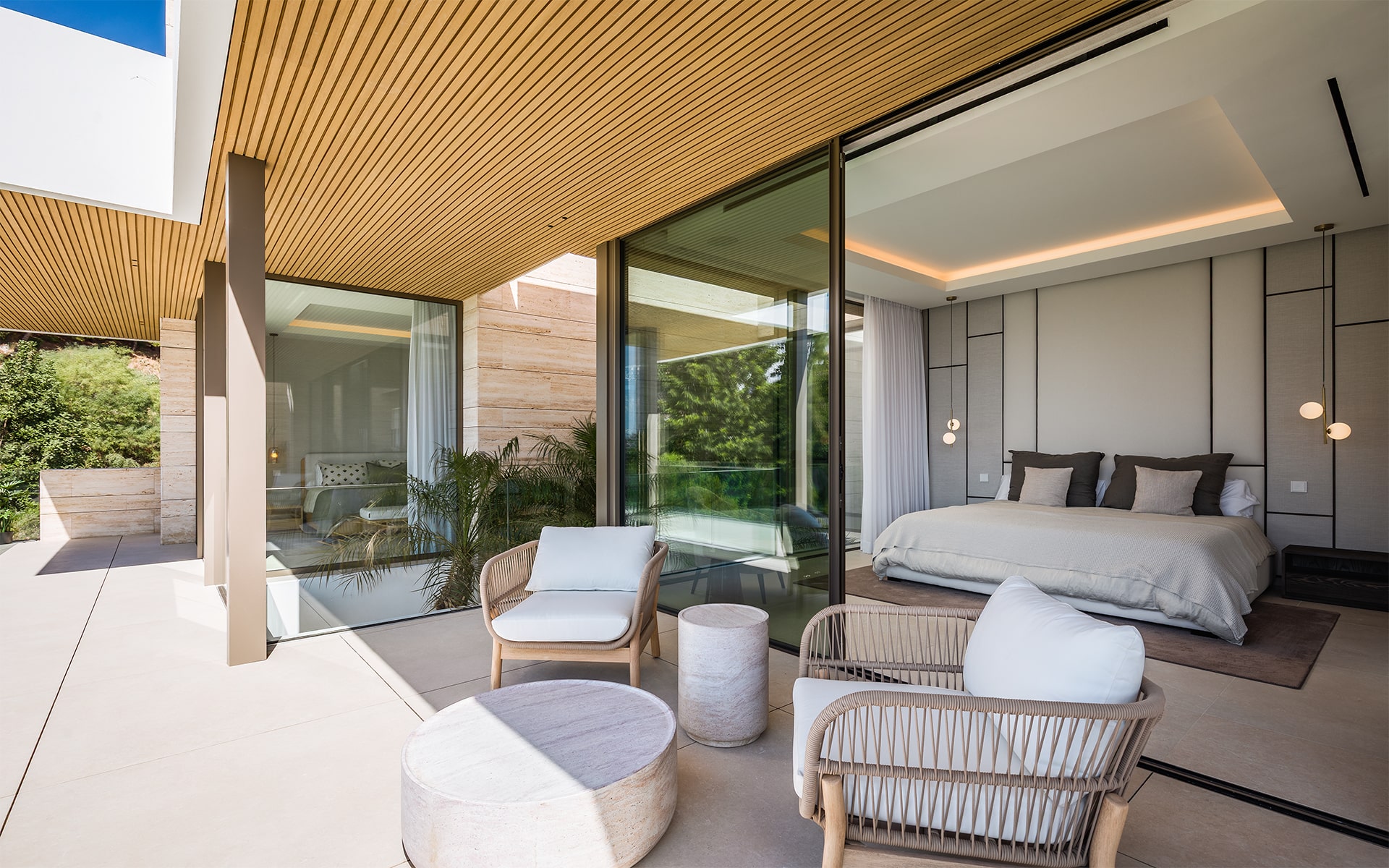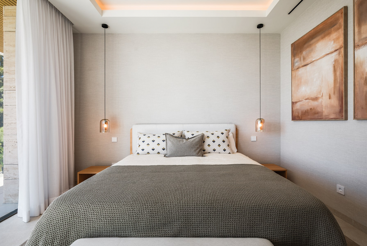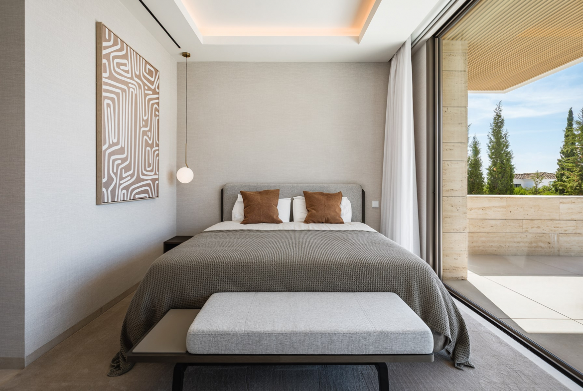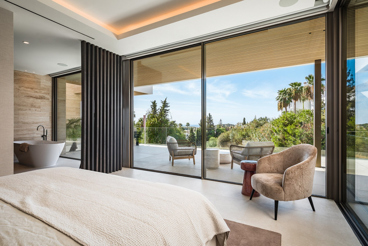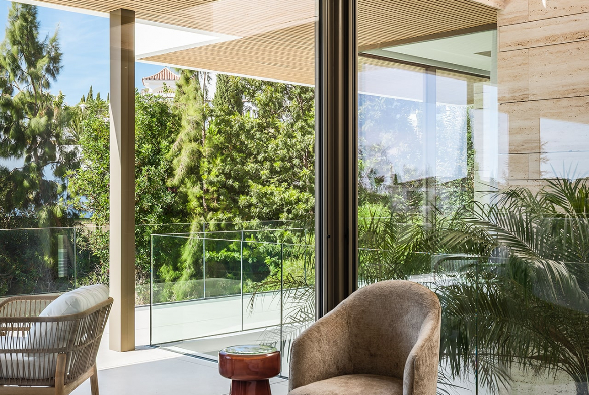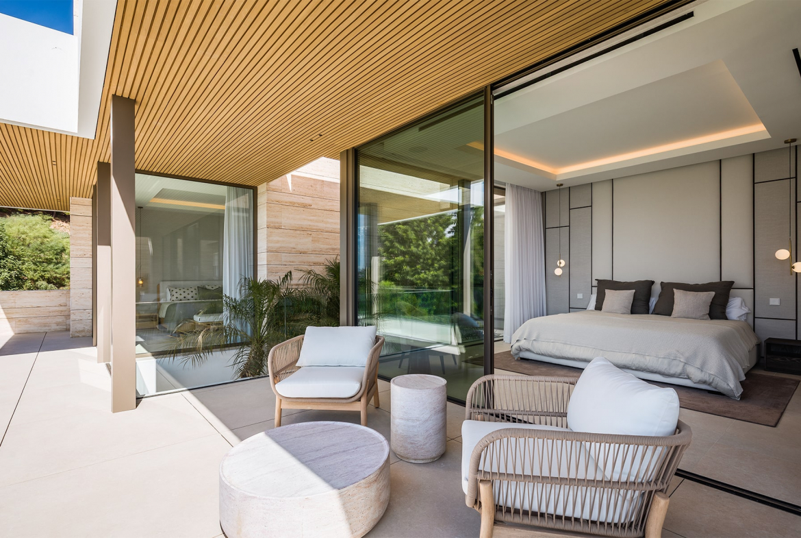 Luxury amenities include a private gym and spa, a wine cellarunderfloor heating, and a state-of-the-art domotic system. With interior parking for three cars and covered carports for two more, the villa ensures both comfort, security, and privacy. Recently completed and ready to move in, this residence offers an extraordinary blend of design, technology, and tranquility — all within minutes of golf courses, beaches, and Marbella’s finest restaurants.