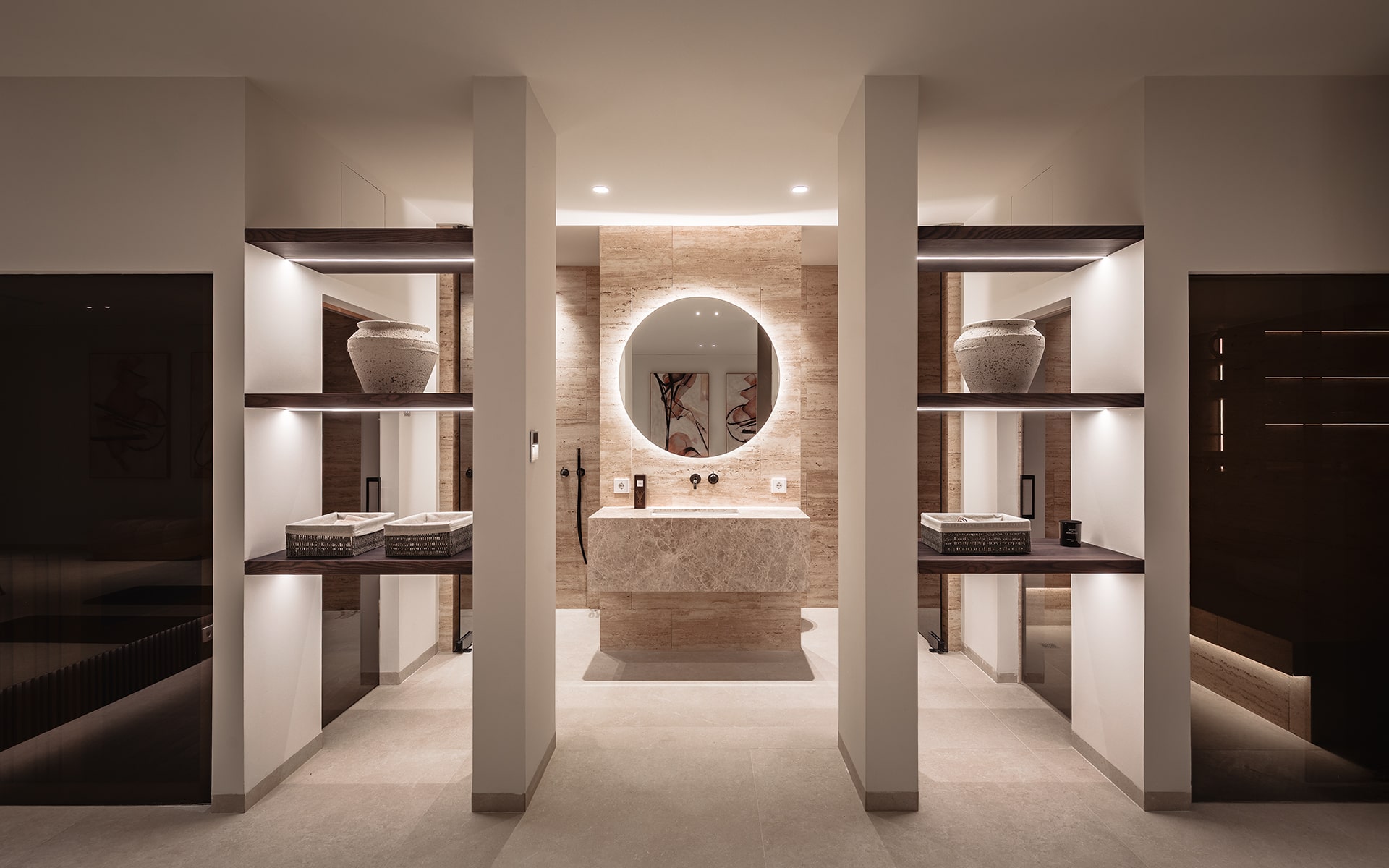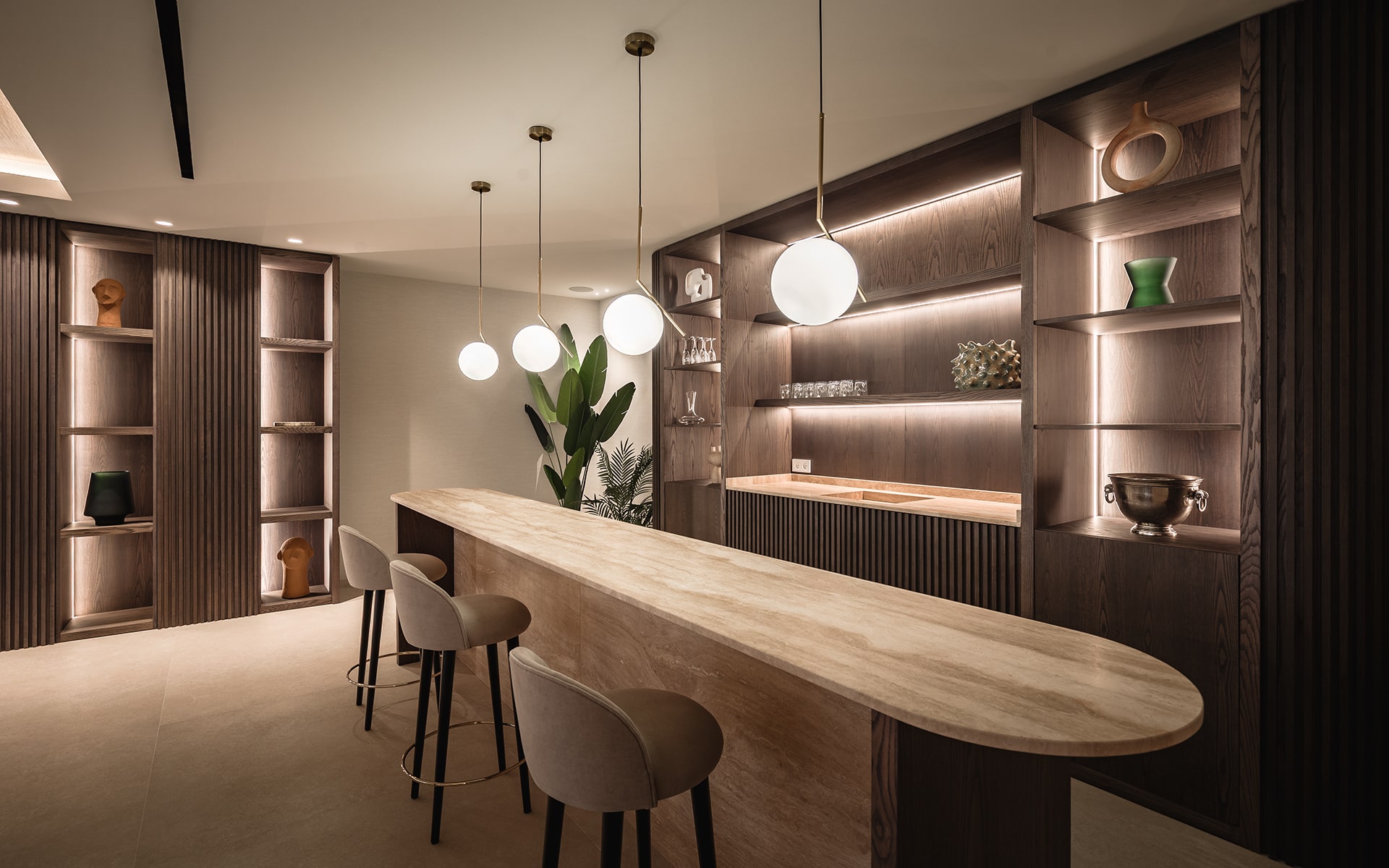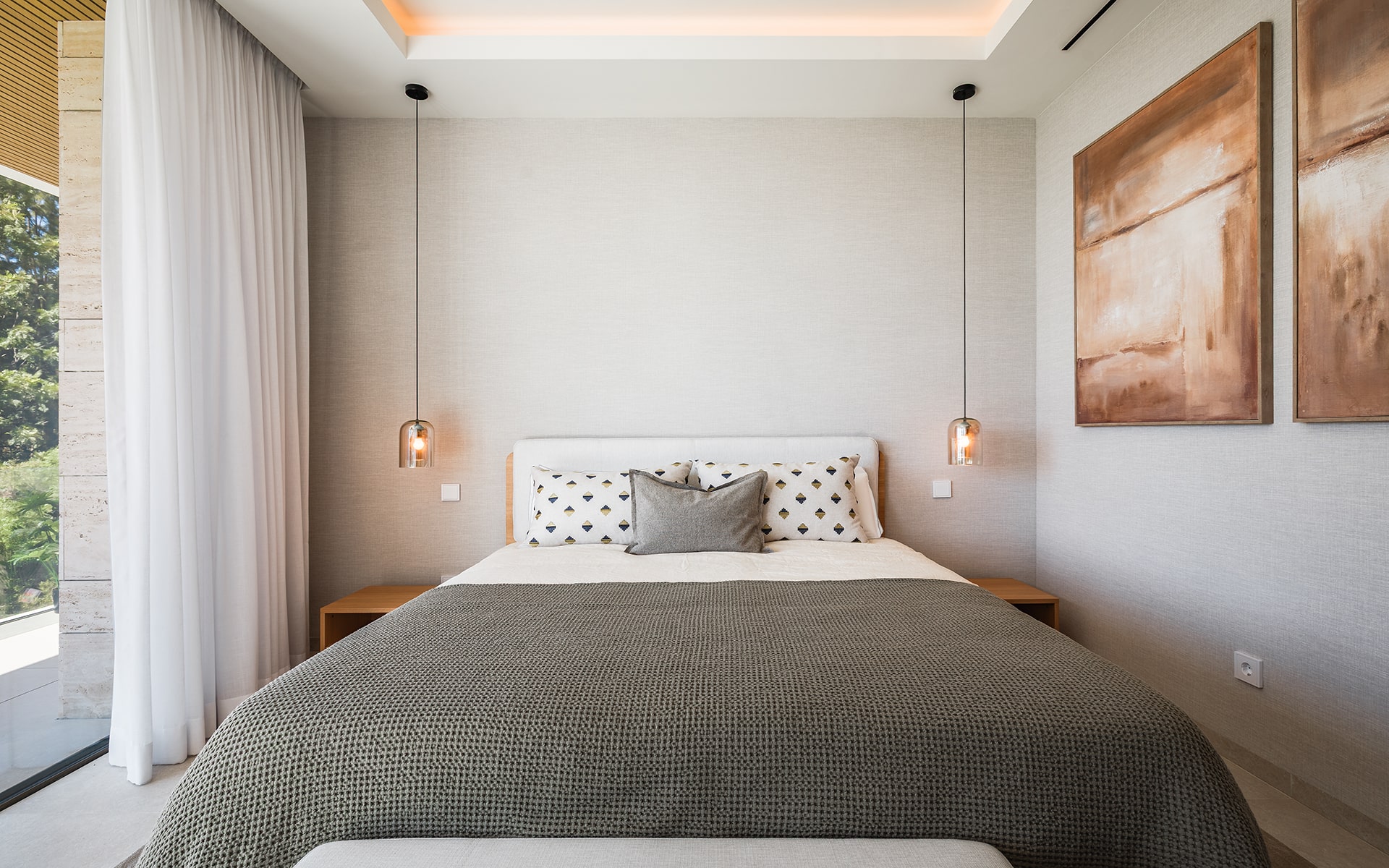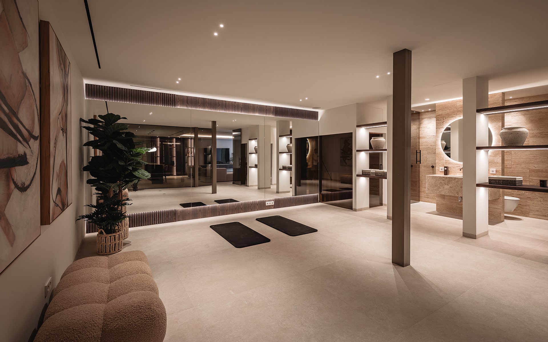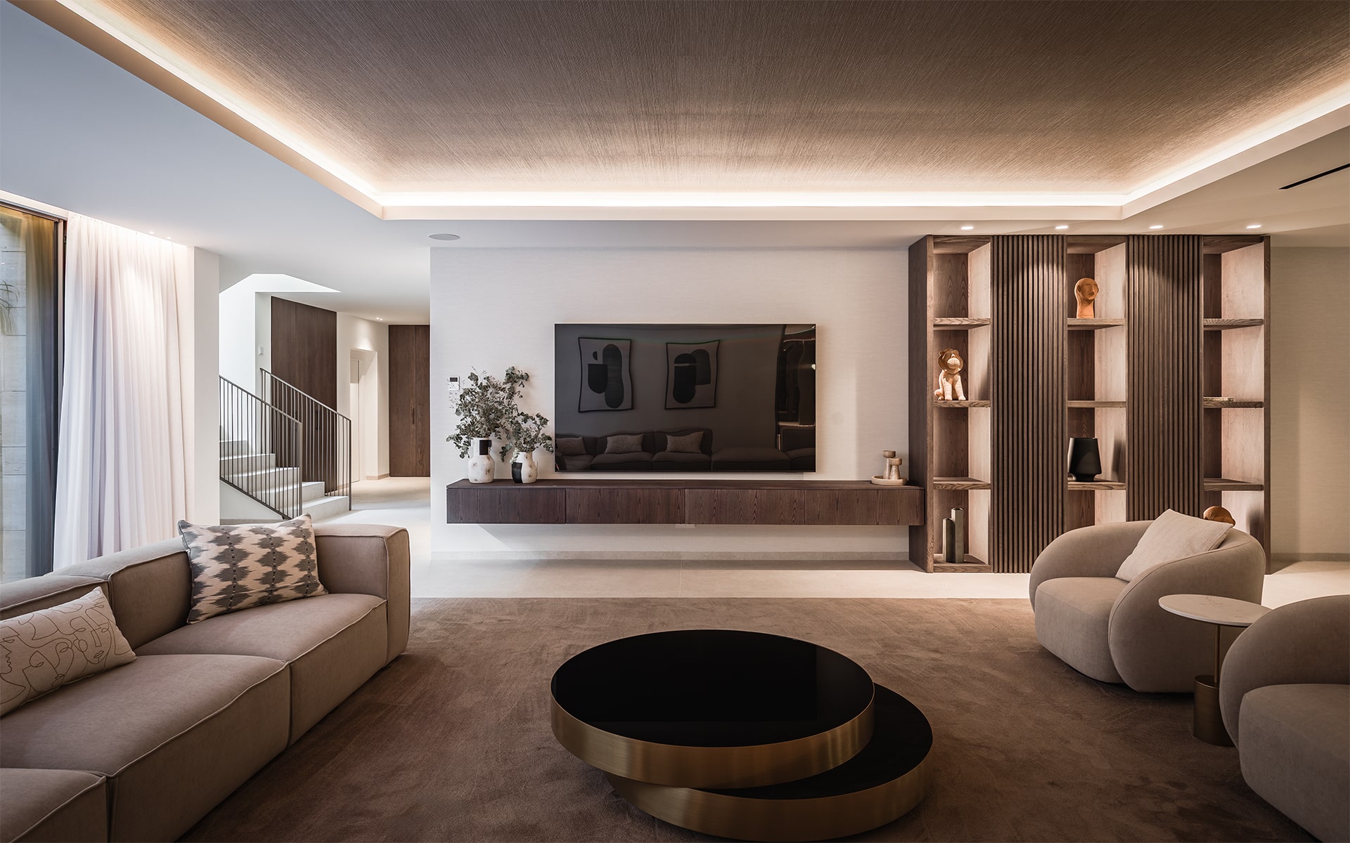 The villa’s architecture combines clean lines and elegant materials with exceptional functionality. Inside, bright open spaces flow seamlessly, featuring a designer kitchen, spacious living and dining areas, and floor-to-ceiling windows that fill the home with natural light.