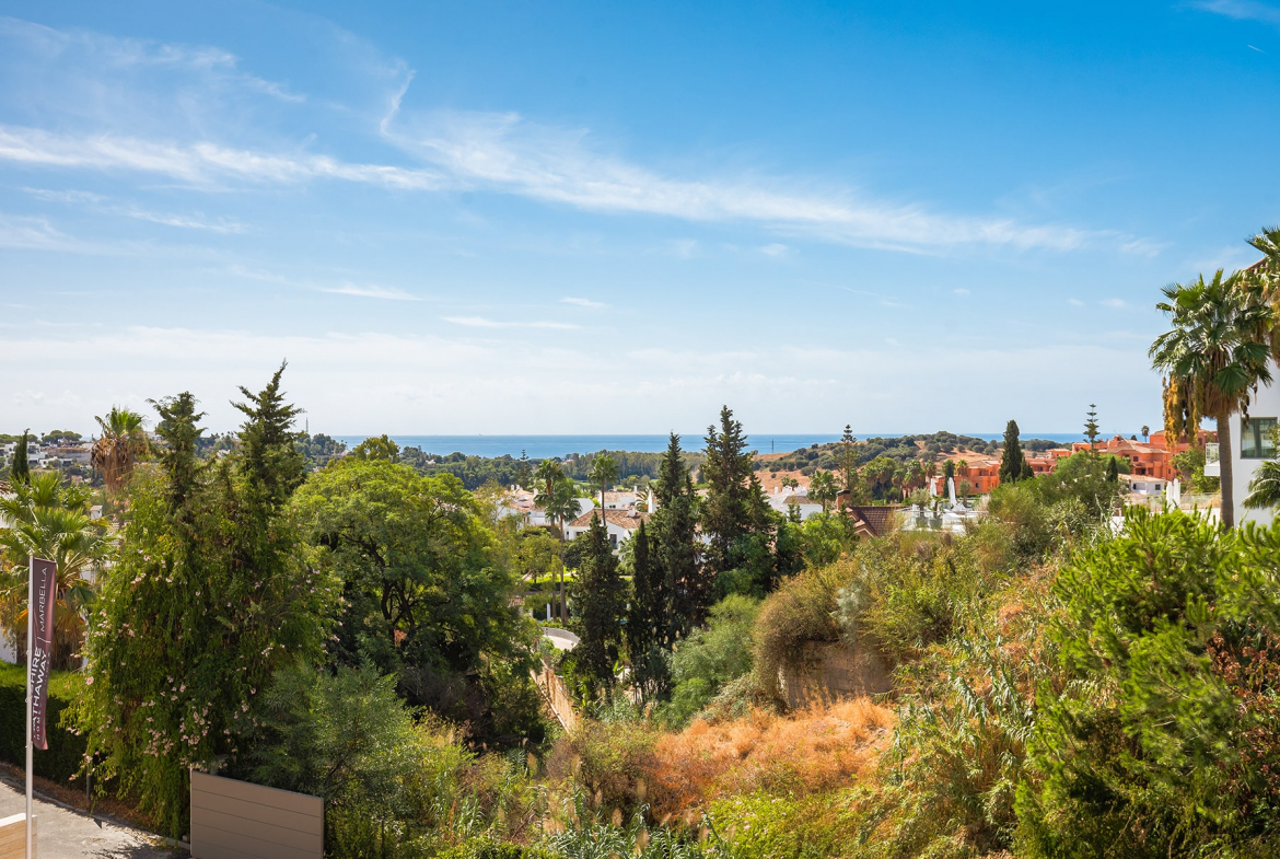 Nestled in the prestigious residential area of El Paraíso, Benahavís, this brand-new contemporary villa embodies refined modern living on the Costa del Sol. Set on a private corner plot with its own cul-de-sac entrance, the property boasts over 900 m² of built area distributed across three floors, plus a stunning rooftop solarium offering serene views of the surrounding greenery.