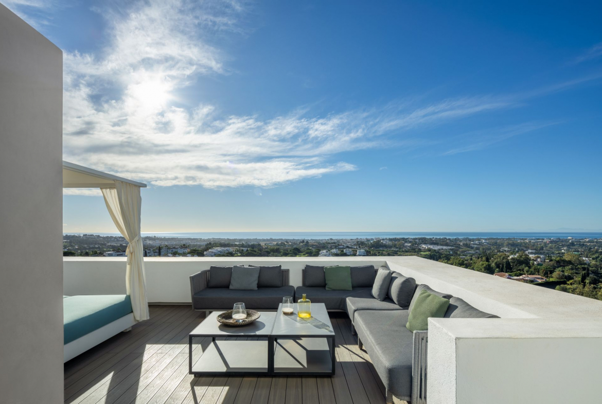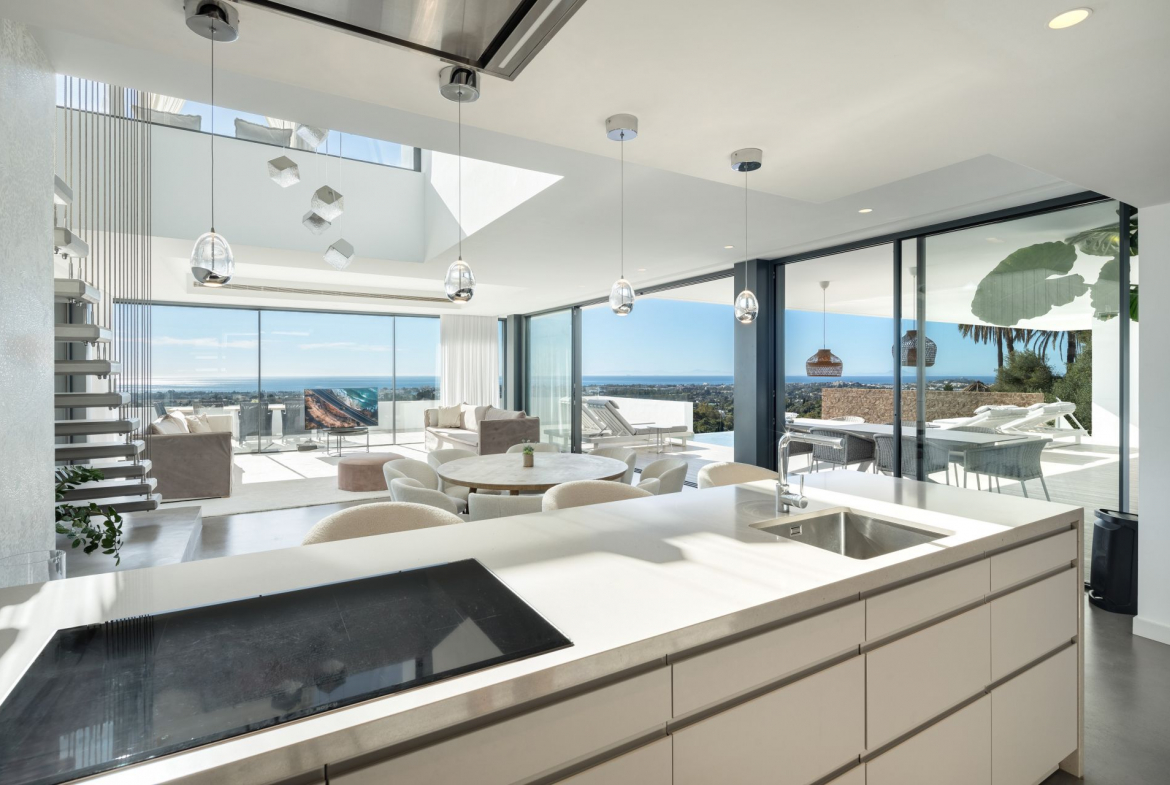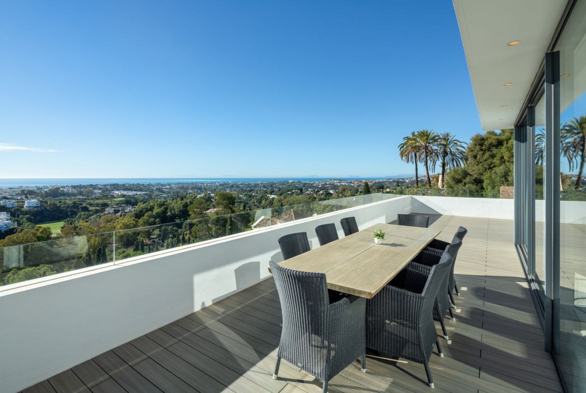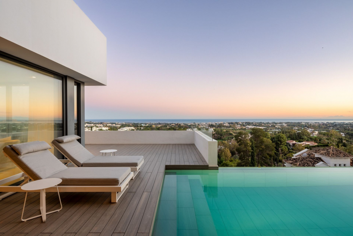 Herrojo 88 is a spectacular Modern villa with a prime location in the gated community of El Herrojo Alto in La Quinta. This property benefits from an elevated position, providing stunning panoramic sea views from all levels of the villa, as well as views of the entire coastline, all the way to Gibraltar and North African coast. The expansive terrace allows for a private pool for all year round enjoyment, as well as chill-out areas and al-fresco dining.