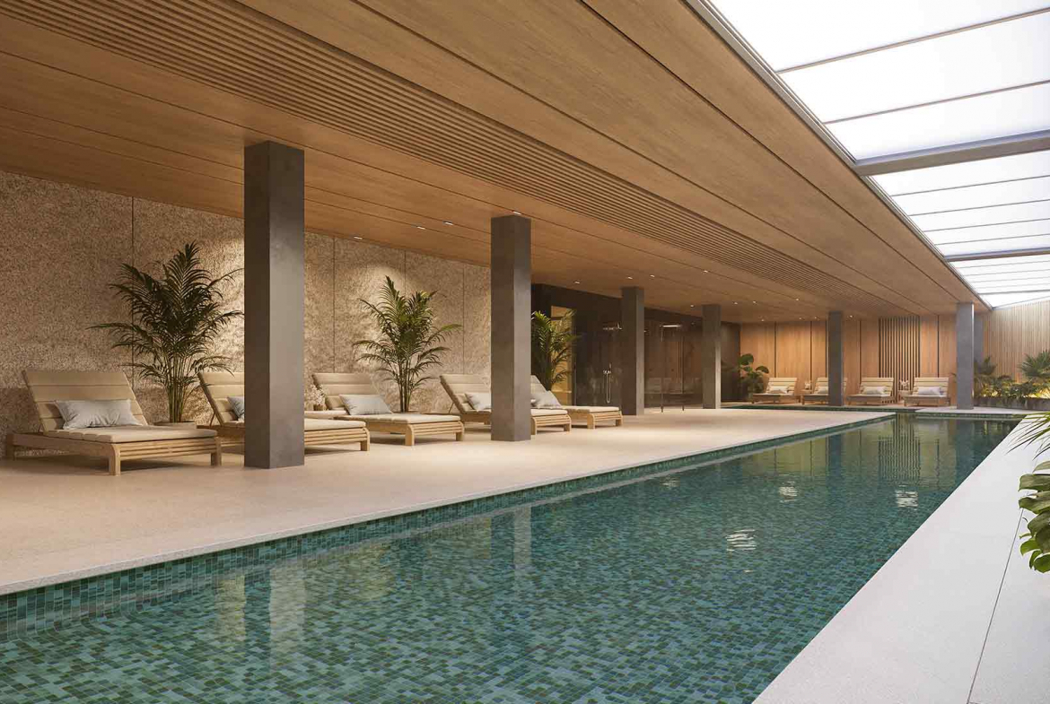 At the heart of the project is the outdoor swimming pool, surrounded by gardens and sun loungers. This creates a true oasis where residents can enjoy the magnificent Mediterranean climate. Additionally, the indoor pool area, together with the gym and spa, evokes the refined and exclusive ambience of a five-star hotel.