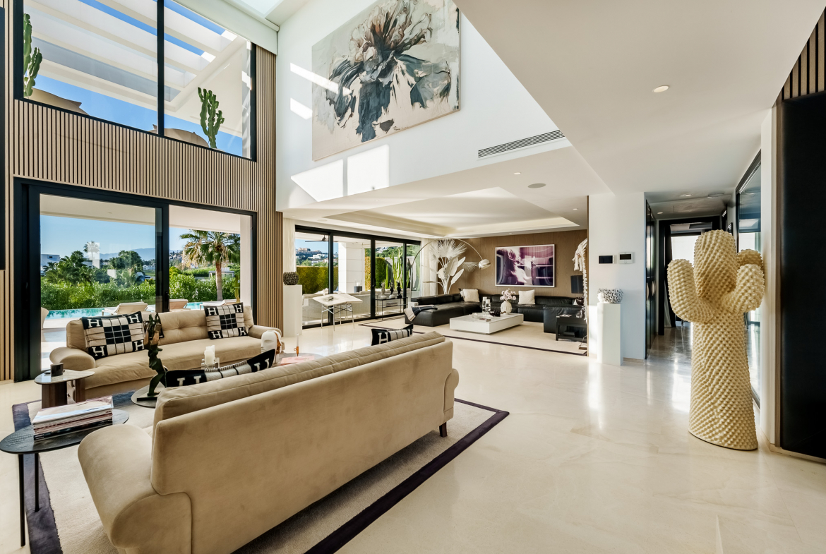 Welcome to Los Olivos 5, a modern masterpiece nestled in the heart of Nueva Andalucía’s prestigious Golf Valley. Offering breathtaking panoramic views, this exceptional villa enjoys a prime location, perfectly blending sophistication with convenience. The property’s striking design is complemented by a stunning infinity pool, expansive terraces with chill-out areas, and alfresco dining spaces, providing the ultimate setting for outdoor living and entertaining.