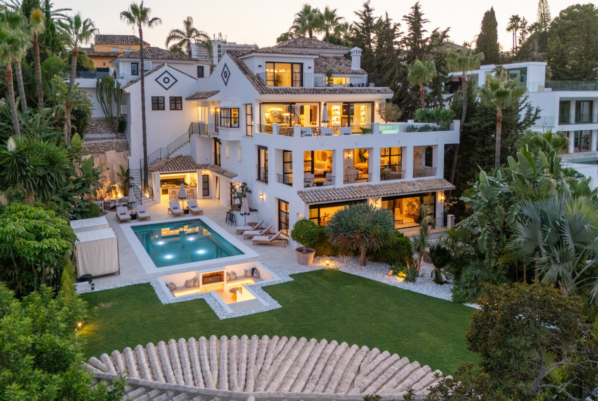 In the heart of the prestigious Nueva Andalucía, just minutes from world-class golf courses, Puerto Banús, and Marbella’s finest dining and shopping, Villa Alba stands as a masterpiece of modern Mediterranean living. This extraordinary five-level villa captures panoramic views of the Mediterranean Sea and the iconic La Concha mountain, blending timeless Andalusian charm with cutting-edge contemporary elegance.