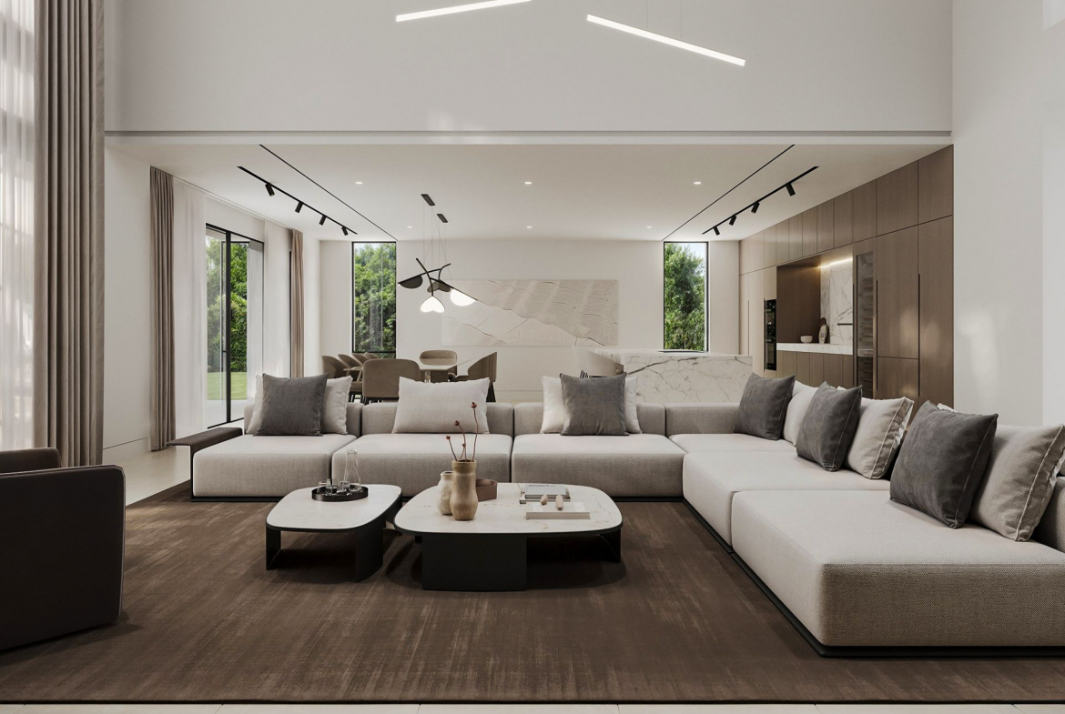 Spanning an expansive plot, the villa boasts meticulously manicured gardens and a private pool, providing an idyllic sanctuary for both relaxation and entertainment. Expansive terraces allow for outdoor dining and leisure, while the lush landscaping enveloping the property guarantees privacy.