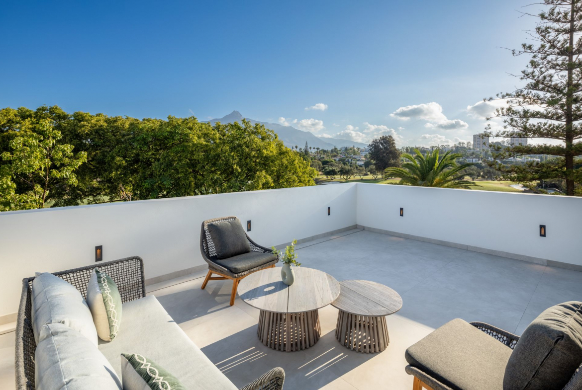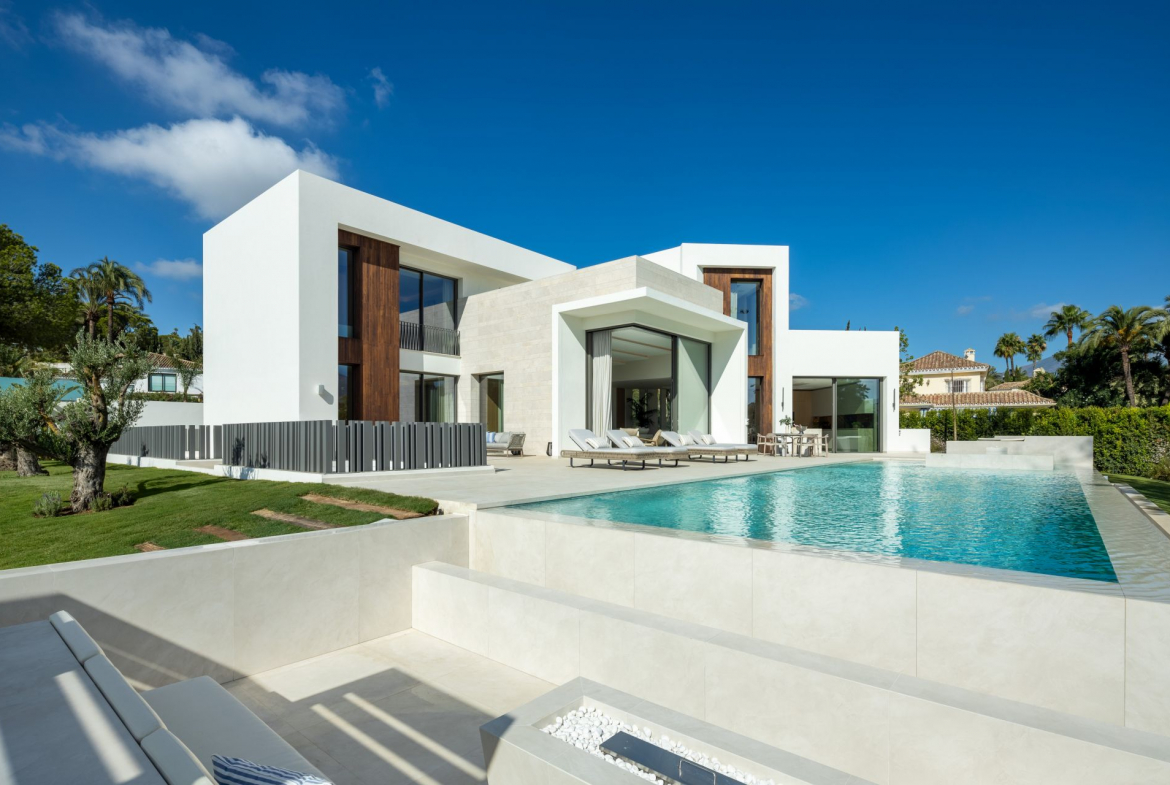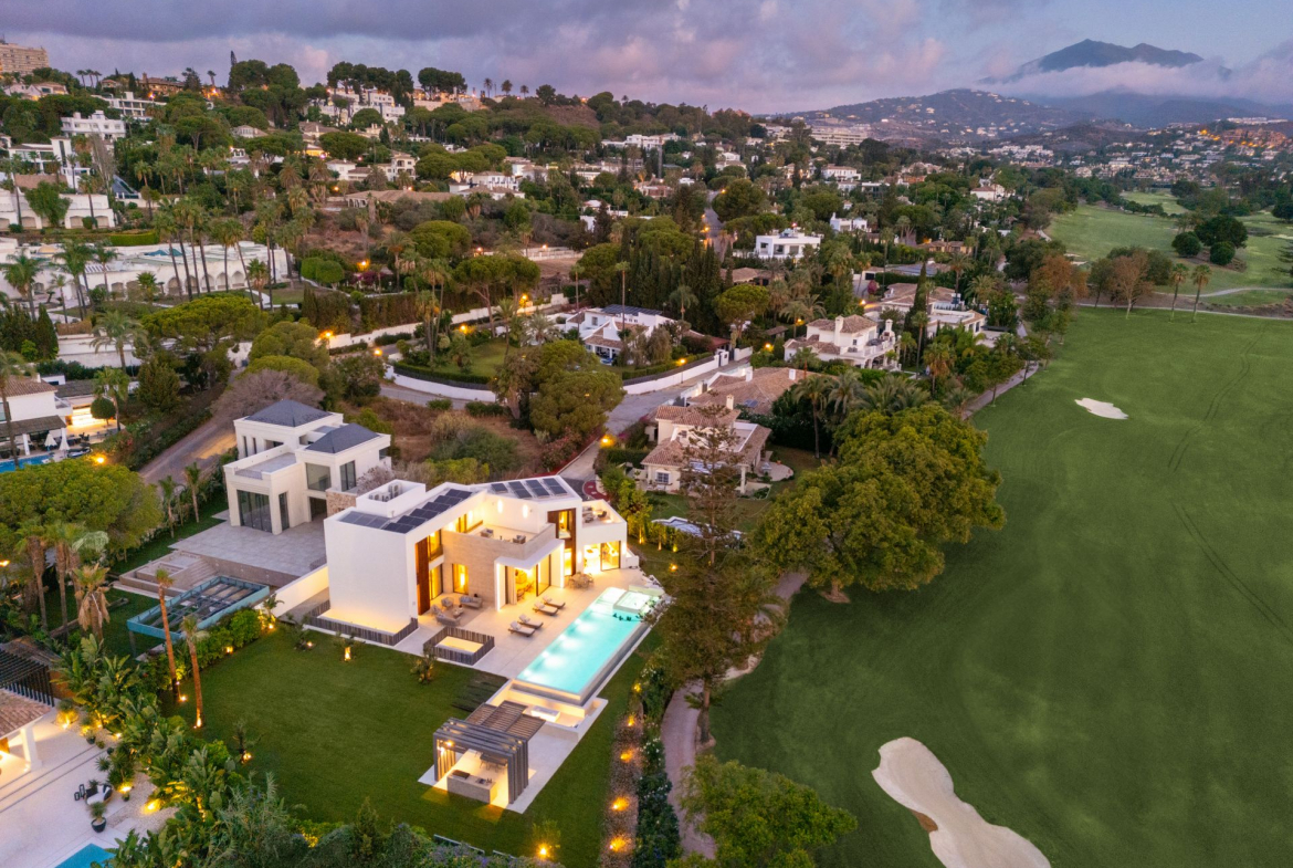 Situated frontline golf of Las Brisas Golf Club in Nueva Andalucía, the location is one of Villa Imagine’s standout features. Las Brisas is known for its tranquil residential setting, beautiful landscapes, and proximity to top Marbella amenities. Nueva Andalucía blends tranquillity with convenience, offering easy access to the vibrant Puerto Banús, famous for its luxury marina, high-end shopping, and fine dining. Residents enjoy a serene atmosphere within a well-established neighbourhood while being a short drive from Marbella’s bustling heart.