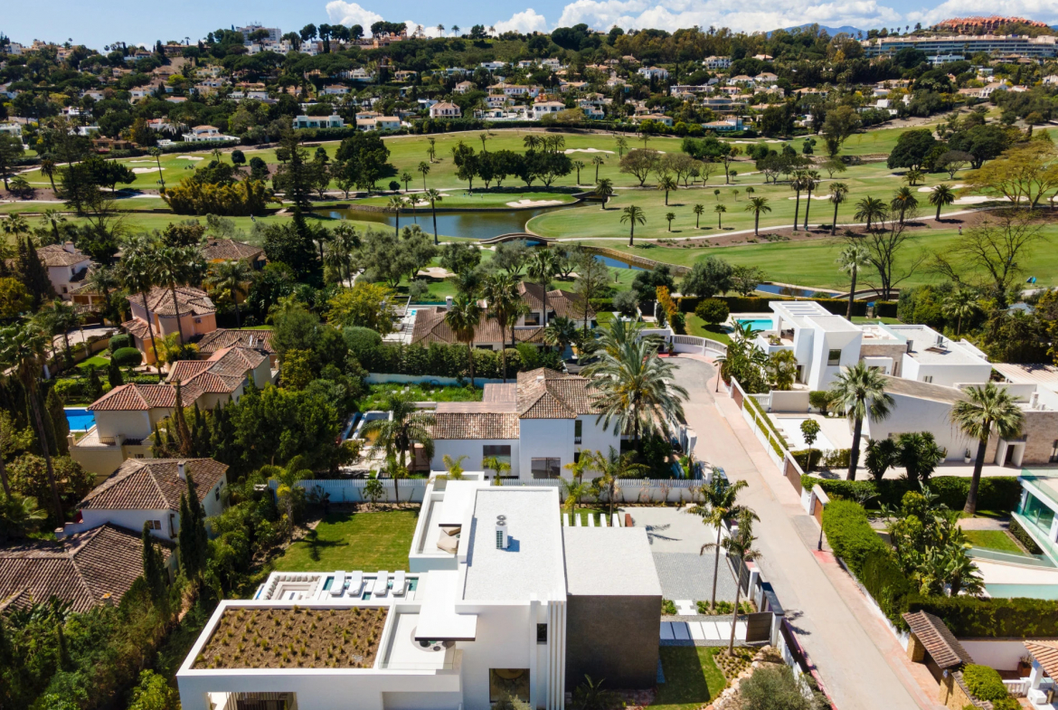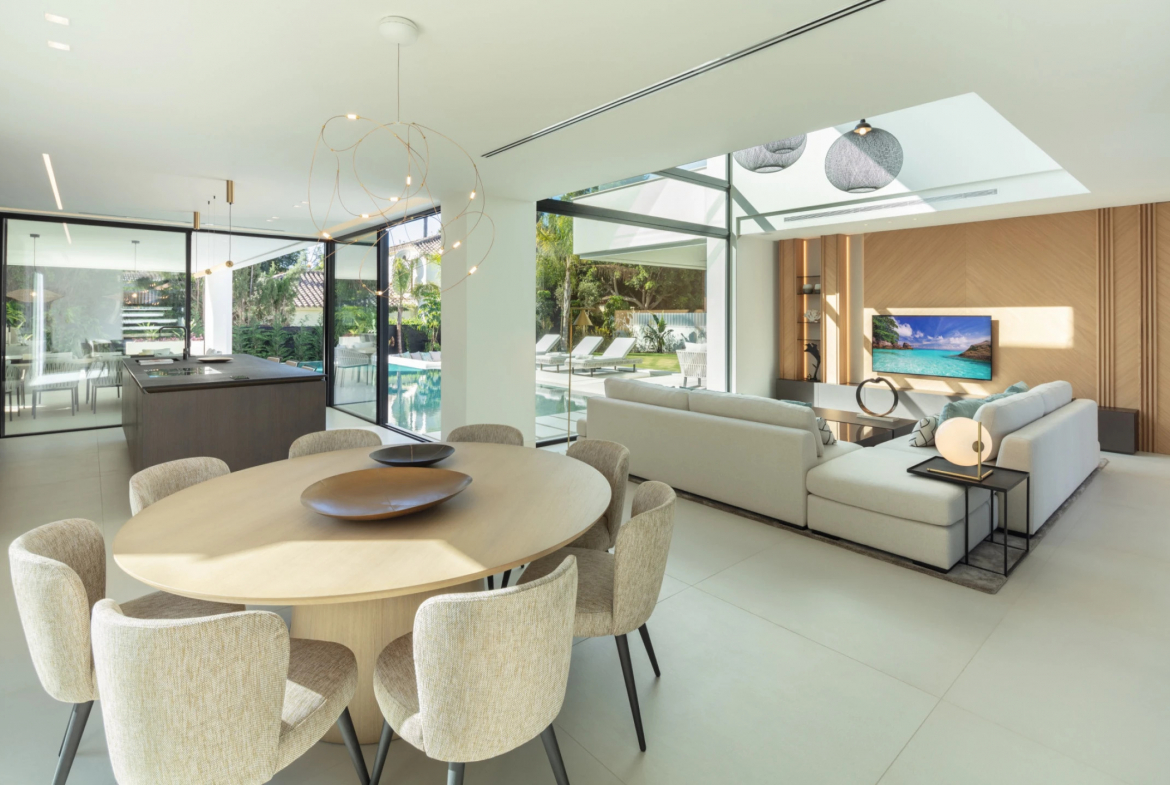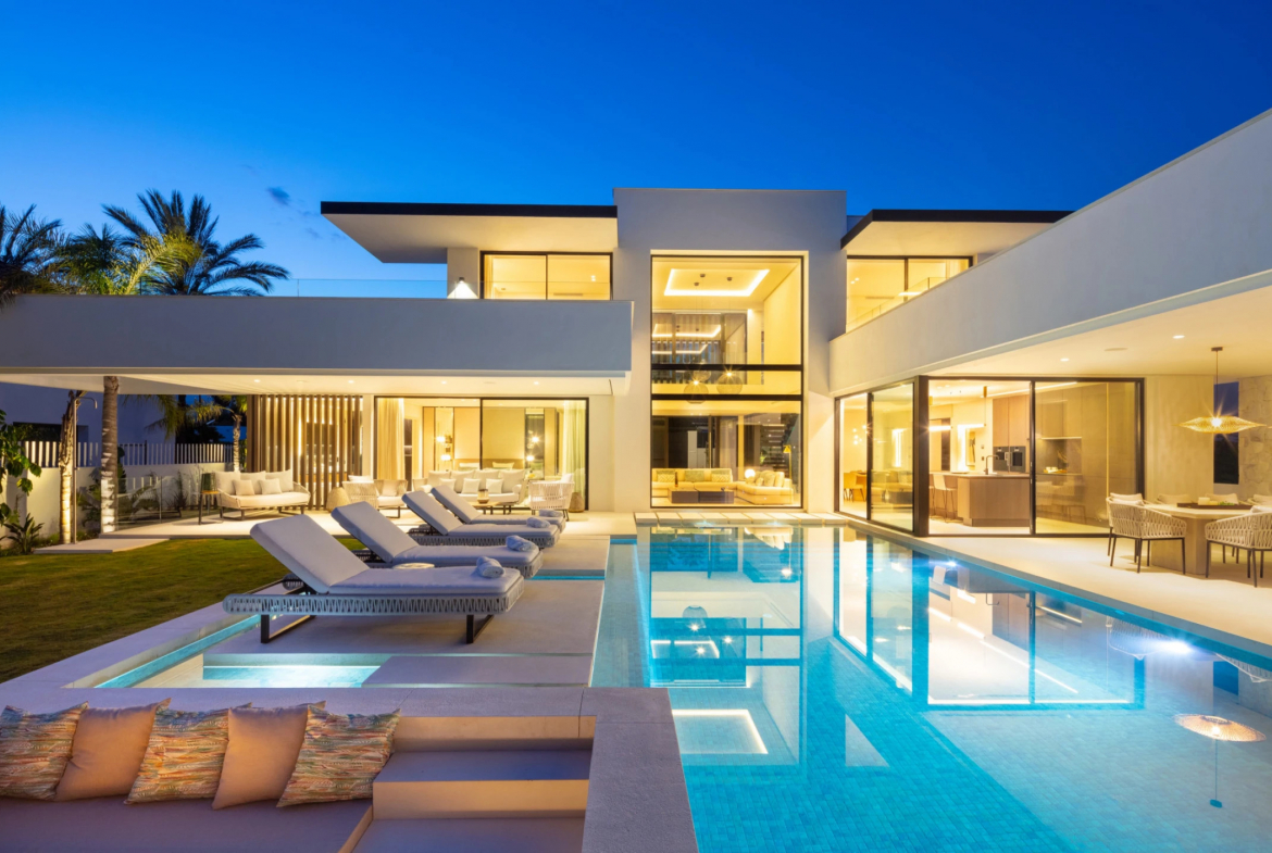 Villa Sirius is a modern villa located in the desirable area of Las Brisas, Nueva Andalucía. The property features a beautifully landscaped garden with a private swimming pool and a sunken chill-out area. Spacious terraces provide an outdoor kitchenette, dining area, and multiple lounge spaces, offering the perfect setting for entertaining or relaxing in the sun.