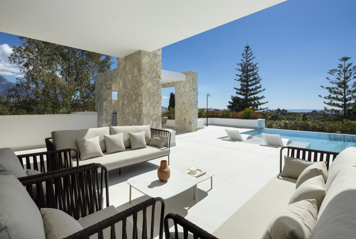 Recently completed, Villa Tiza is a brand-new, high-specification villa for sale and located in an exclusive gated development of just three luxury residences within the La Quinta area. Spanning three levels and designed for effortless contemporary living, this five-bedroom home offers a seamless blend of interior sophistication, outdoor comfort, and panoramic views over the Mediterranean Sea and La Concha mountain.