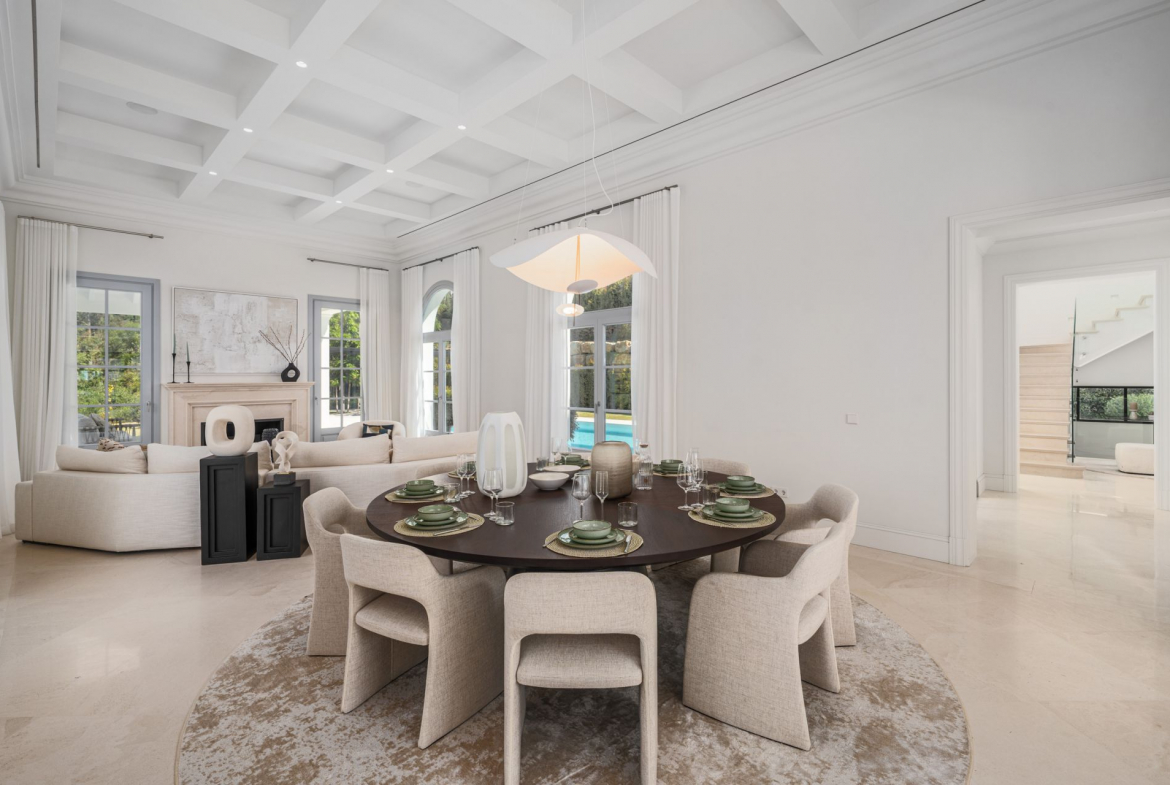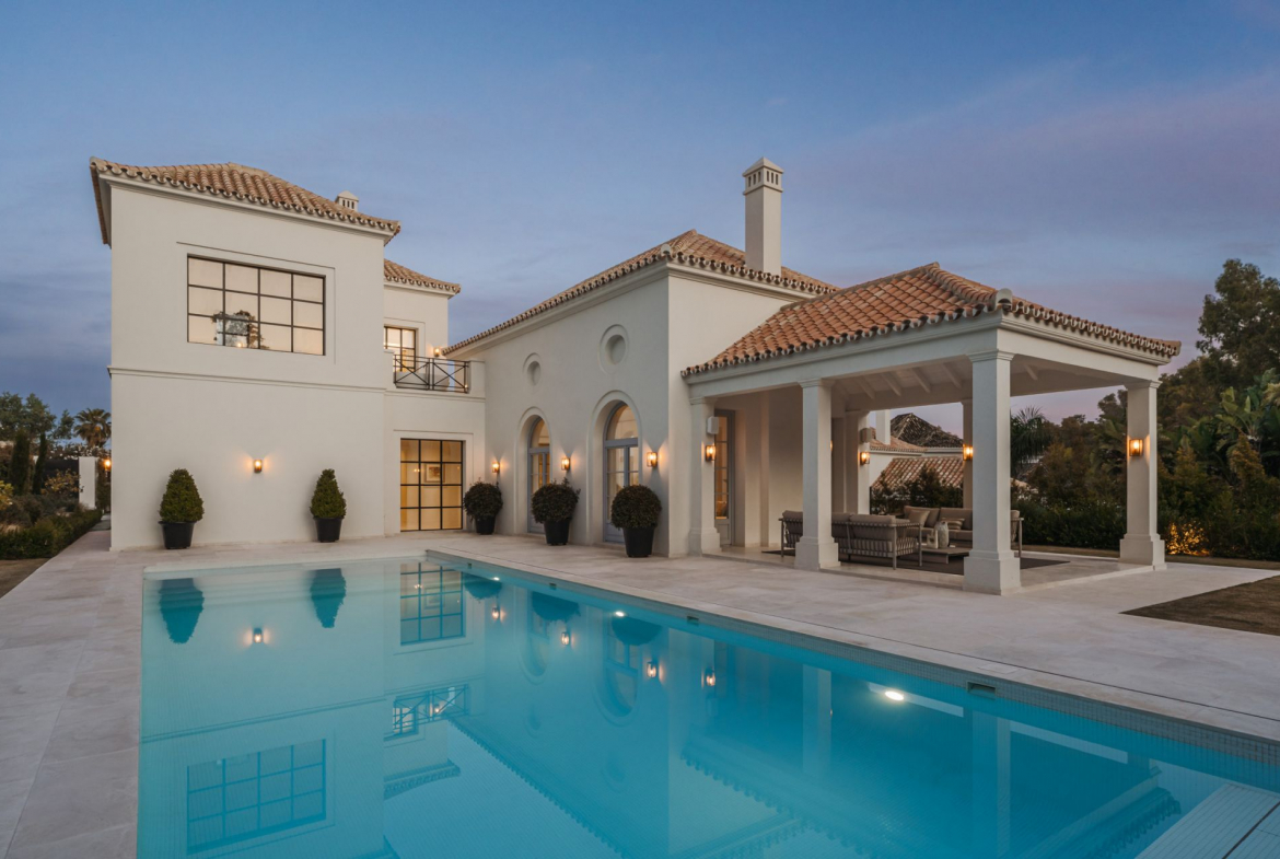 Villa Valora is an exceptional villa for sale within La Cerquilla, an esteemed neighborhood in Nueva Andalucía’s renowned Golf Valley. Completed in 2023, this newly constructed villa represents a harmonious blend of modern design and classical influences inspired by French provincial architecture. Its expansive 475 square meters of built area, along with a refined 78 square meter terrace, offer ample space for relaxation and alfresco dining.