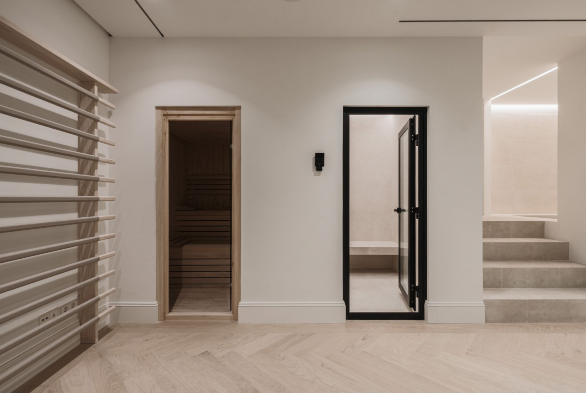 Attention to detail defines this property, with its design under the guidance of a renowned architect ensuring that the villa seamlessly integrates timeless classical elements with contemporary amenities. The villa is equipped with prestigious features, including a state-of-the-art alarm system, an elegantly designed barbeque area, and a relaxing sauna, providing a cohesive combination of security, luxury, and comfort.